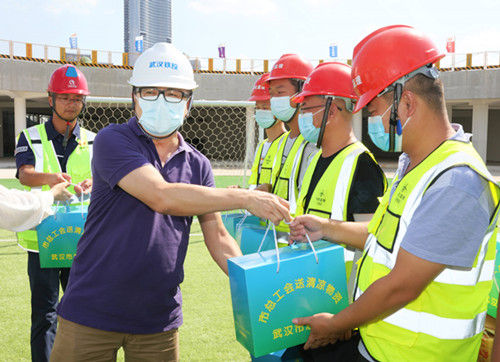 李兵副主席为奋战在高温一线的建设者们送上了防暑降温物资,询问了工友们的工作情况,感谢他们为大武汉发展作出的贡献,叮嘱大家要合理安排作息时间,注意劳逸结合;提醒各参建单位要切实做好露天作业各项防暑降温措施和劳动保护,全力保障职工健康安全。