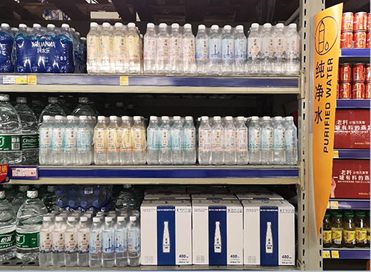 6月6日,水务集团推出的“h水1906”饮用纯净水品牌正式在麦德龙销售。这是“h水1906”饮用纯净水首次布局线下超市渠道。 目前”h水1906“以整箱形式销售,上架销售有两款规格饮用纯净水,其中“长江之心”高端款式每瓶480毫升每箱12瓶,售价48元/箱,单价4元/瓶;“武汉映象”普通款式每瓶500毫升每箱12瓶,售价30元/箱,单价2.5元/瓶。
