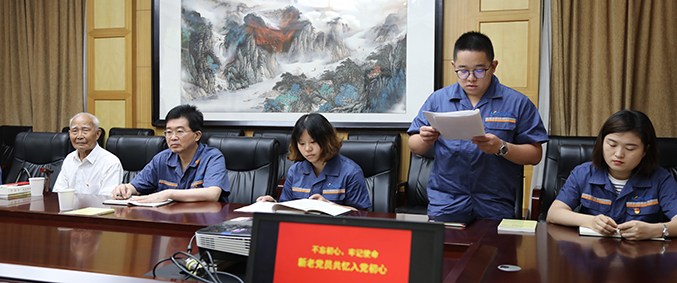 活动中,刚刚转正的两名青年党员满怀深情地宣读了入党志愿书。面对党旗,肖老和青年党员代表们一起重温了入党誓词。