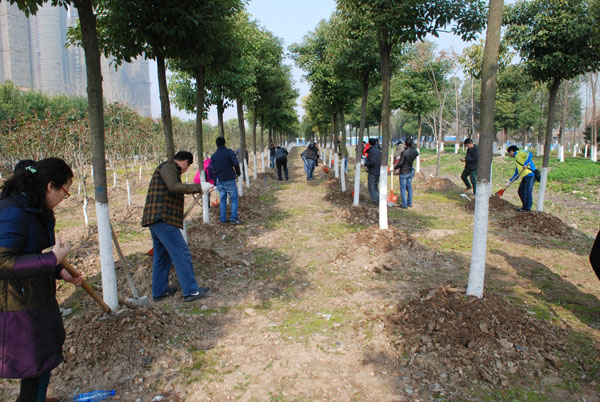 阳春三月,草长莺飞。在这大地回春,万物复苏之际,房产集团公司工会组织开展了以绿化养护为主要内容的植树节活动。3月12日上午,公司机关及基层各单位职工共30余人带着铁锹等工具,来到国博中心苗圃基地,在基地技术人员的现场示范、指导下,对我公司栽种的樟树、桂花树、红叶石楠等树木进行了养护。