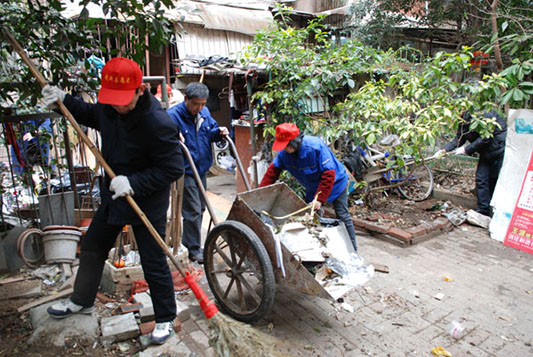 在毛泽东同志“向雷锋同志学习”题词发表52周年纪念日之际,为大力弘扬雷锋精神,倡导时代新风正气,动员全体职工立足本职、服务社会,2015年3月4日上午,城投房产集团组织所属各分公司学雷锋志愿者及部分干部职工共计50余人,进入?口区宗关街井南社区、江岸区洞庭社区、花桥小区等地,开展了形式多样的便民志愿服务活动。
