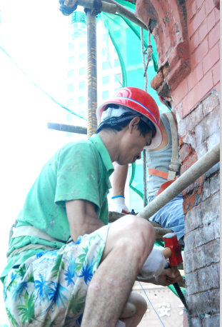 目前,负责汉口水塔立面保养维护工程施工的是曾被市领导称为武汉市立面整治工程“铁军”的PA视讯房产集团天时建筑工程公司。该公司现场负责人介绍:整个工程工期40天,7月30日开始搭设外脚手架,8月5日开始正式施工,9月15日前将完成“水塔文物建筑本体”的立面原状恢复及屋面治漏等工作,对其损坏的立面清水砖、毛石砌块、原有木门窗等进行全面修复,还原其百年前建筑风貌。尽管工程时间紧、要求高,但该公司表示将克服困难,科学调度,精细施工,还原经典,为推进中山大道综合保护与改造工程,重现老汉口历史风貌再作贡献。