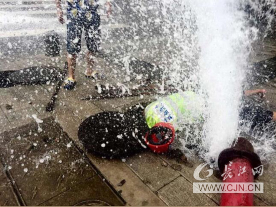徐金奎毫不犹豫冲往水柱中央,由于冲击力太大,徐金奎根本无法站稳只能伏地前行!金师傅艰难地打开井盖,发现井室里的覆盖的淤泥影响查找闸门顶头。徐金奎直接贴地徒手清除井室淤泥、垃圾,摸到顶头后,迅速套上闸门钥匙,果断关闭了闸门!