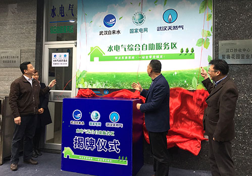 武汉市水、电、气三家公共服务企业首次实现营业厅资源共享,开辟了“水电气综合自助服务区”,方便市民“一站式”办理水电气缴费、圈存、查询等业务。3月24日上午9点半,水电气联合召开发布会,三家企业领导共同揭牌。