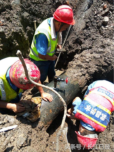 19日8时许,武昌中山路和平大道路口一根400mm管道突发管漏,市自来水公司武昌供水部维修工程处接到工作单后立即赶往现场抢修。高温下水务工作人员头顶烈日,展开挖坑、排渍水、清淤等抢修工作。在现场确认维修点位关阀后,武昌管线所迅速安排消防水车现场待令以确保停水区域用户的临时供水。因突发性停水,和平大道中山路口至四马路,玉桥新都小区一带用户受影响。经过全力抢修,当天15时恢复供水。