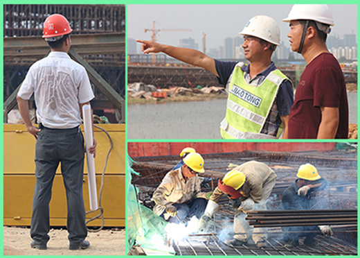 烈日炎炎下的三环线南改造项目野芷湖立交工程和李纸路立交工程工地上......