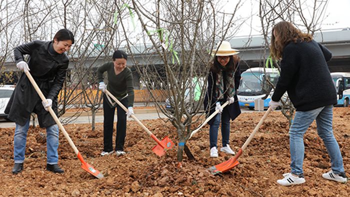 3月10日下午,集团公司本部工会组织本部干部职工前往三环线野芷湖立交工程现场,参加一年一度的植树活动。