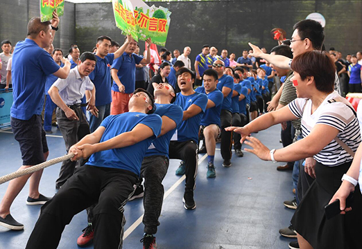 激情五月,活力四射。为营造快乐和谐的文化氛围,引导职工参加健康有益的活动,增强凝聚力和团队精神,为企业的改革发展集聚智慧、贡献力量。5月18日下午,集团公司举办了职工拔河比赛,公司领导金国发,吴文、荣巩、邓耀光等参加活动并为优胜单位颁奖。