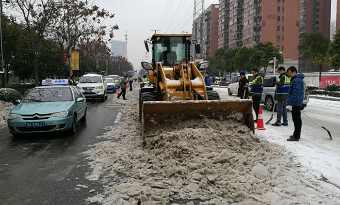 经过近6个小时的辛勤劳动,在铲车等机械设备的辅助下,大家热情高涨、不辞辛劳,把公司门前1公里长的马路积雪积冰铲除殆尽,极大地方便了过往市民出行。