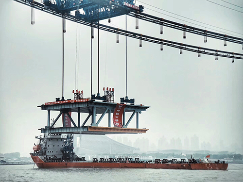 杨泗港长江大桥桥址位于黄金水域,往来船舶众多,施工期间气温低、降雨多,给钢桁梁施工带来诸多不便。城投公司提前统筹调度,针对钢桁梁架设工作,从2017年就会同大桥局研究制定了“双机抬吊”的关键性施工措施,有利于提高架设效率,并能抵抗长江江面大风等不利气候因素。按照计划,钢桁梁架设将于12月中旬全部完成。