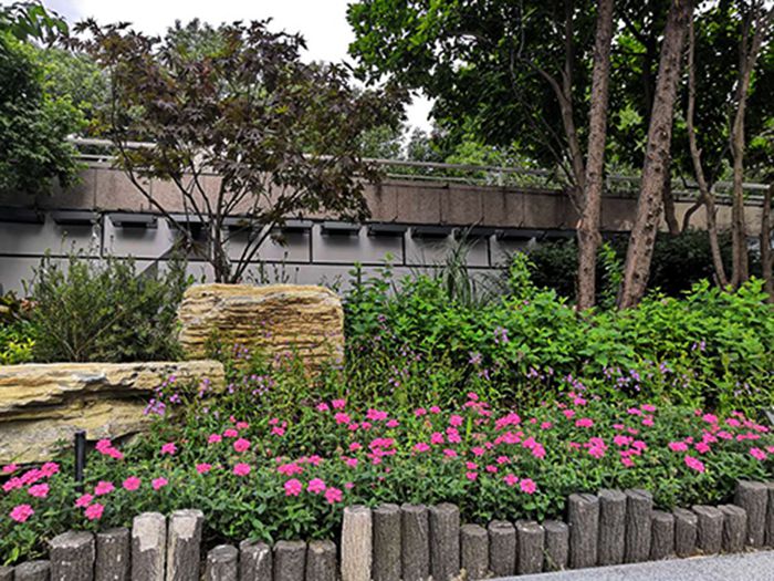 所谓花境,是以树丛、树群、绿篱、矮墙为背景的一种花卉布置,主要是模拟自然界中林地边缘地带多种野生花卉交错生长的状态,是园林绿地中一种特殊的种植形式。