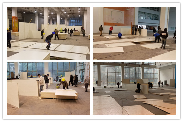 为确保项目建设顺利推进、按期建成,公司领导林驰、朱斌、盛华等轮班驻守现场,公司项目管理部、所属桥建集团负责现场管理。项目由汉阳市政集团负责施工,同时公司安排所属水务集团负责供排水建设和服务保障,所属誉城建设集团增援施工人员力量。在公司的统一指挥和组织领导下,项目施工单位15日凌晨连夜采购、运输木芯板以及水电设施设备进场,同步开展展馆场地清理等工作。