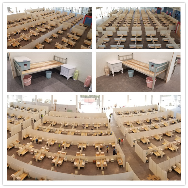 目前,项目建设正在顺利推进。截至16日上午,已完成了上、下两层全部隔舱安装以及二层518个床位拼装,配套水、电等同步推进中。预计16日晚24点,可完成上下两层全部1030张床位的布设以及主要设备设施安装。