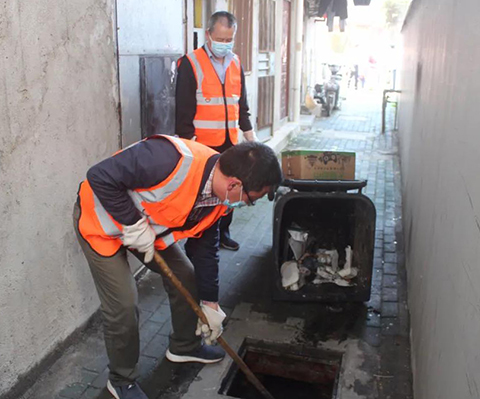 10月1日上午,房产集团工作人员在管辖的房屋区域疏通窨井
