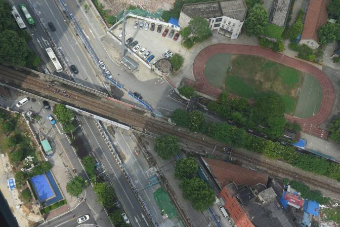 5月24日上午9时,武九铁路北环线三层楼铁路立交桥钢轨开始进行切割拆除。