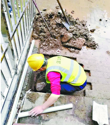 2月4日上午10时,王峰接到后湖大道同鑫花园景福苑水压低的信息后,和同事立即赶赴现场。经过现场排查,王峰判断可能是小区地质沉降导致的加压管漏水,通过听漏定点,最终确定为该小区6栋1单元管道漏水,造成用户水压低。不过,如果直接在漏水点开挖,不仅抢修时间会延长,同时也会对一楼住户家里的装修造成影响。