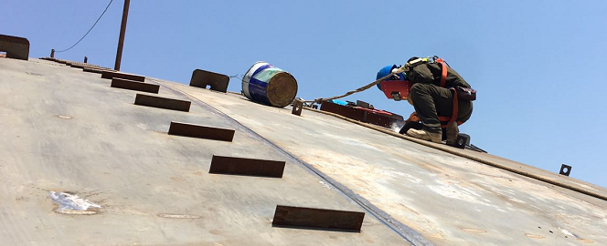 已有十多年焊接经验的詹欢林说,每天在拱顶上爬上爬下,一个月要损耗手套两双,两三个月就要换双鞋。尽管很辛苦,但焊接是个精细活,必须完成好。詹师傅说,按米数,一个人焊立缝的话,平均一个人焊2至3条,大约6到9米。焊横缝的话,连打底带盖面,约7、8米,快的话10米左右。我们为这次复工做足了充足的准备,防疫防控已经做的很到位了,在接下来的工程,我们保质保量按期如约完成。
