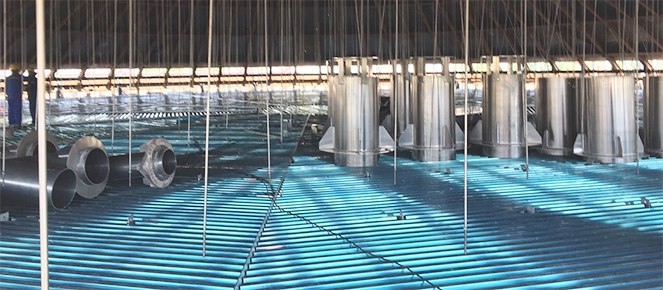 武汉市燃气热力规划设计院有限公司EPC总承包单位项目经理赵海峰介绍,本项目的主体工程就是这3万立方米的LNG储罐,我们的施工工法采取的是倒装法施工,拱顶施工完了之后,采取顶升,壁板是一环一环的往上加,加一环壁板就顶升2米,直至整个罐体完成。