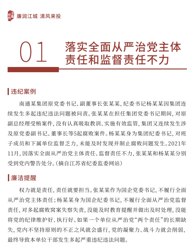 【党风廉政宣教季】 小红书导入行动 |01 落实全面从严治党主体责任和监督责任不力